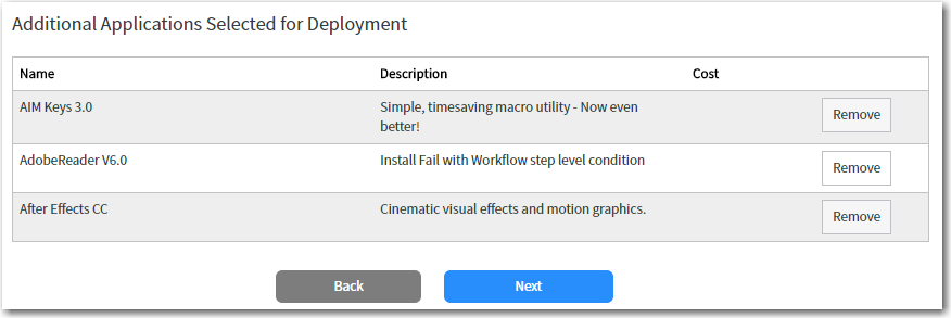 10. Select the additional applications that you want to migrate and then click Add Applications . The applications are added to the Additional Applications Selected for Deployment table at the bottom of the panel.