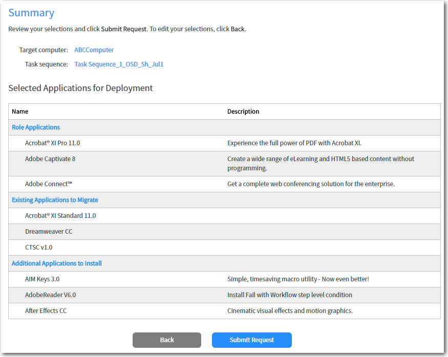 • If a catalog item has been designated as a Core application , then it will not be displayed on this panel, even if it is installed on the selected computer.