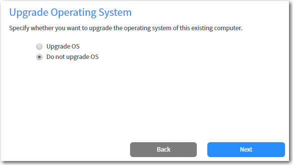 • If you only want to migrate applications or add additional applications to the existing computer but do not do not want to upgrade its OS, select Do not upgrade OS .