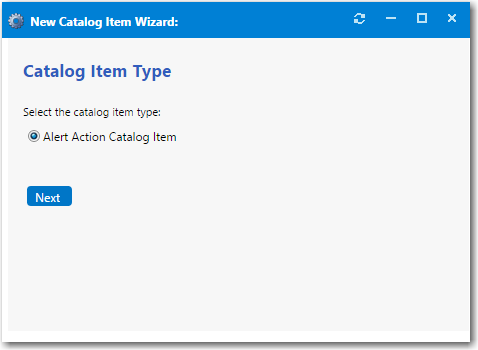 Click Add New Alert Action Catalog Item . The New Catalog Item Wizard opens.